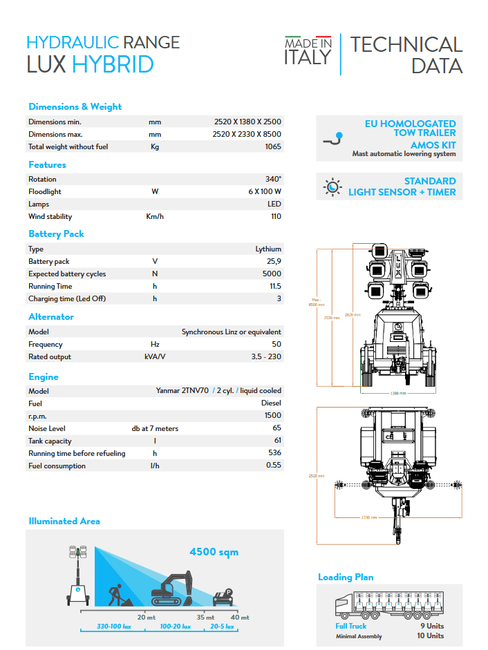 - LUXTOWER LUX Hybrid Lithium | High‑power light tower up to 4500 m²