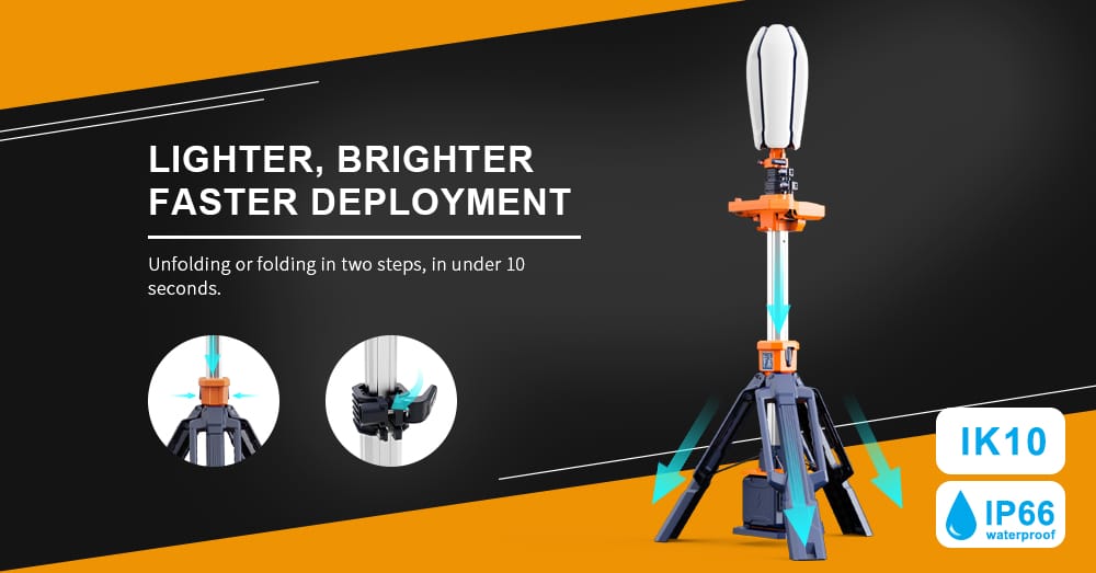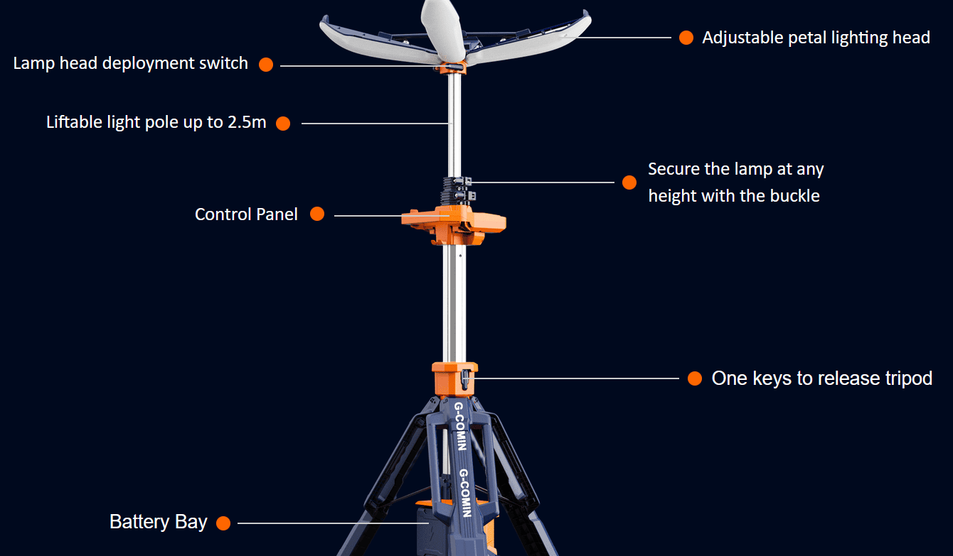 The PL-200 Petal Light Tower combines 360° illumination, innovative design, and powerful performance in one ultra-portable lighting solution. With its biomimetic petal structure and seamless deployment in just 10 seconds, it provides professional lighting anywhere, anytime.