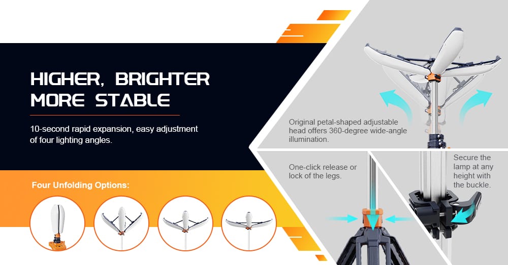 360° Lighting Coverage: Adjustable petal design offers wide-angle illumination with spherical or hemispherical light distribution and no dark spots.