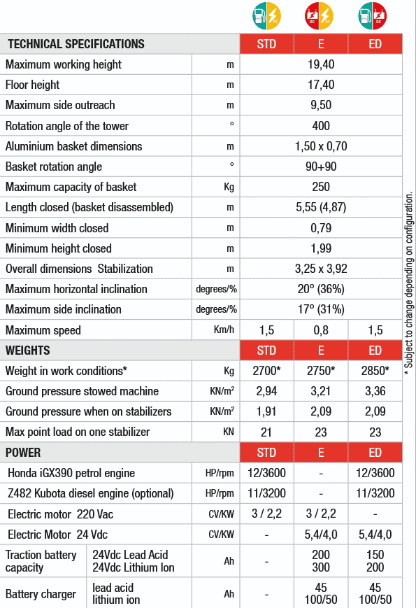 Available in full electric battery version or HYBRID upon request