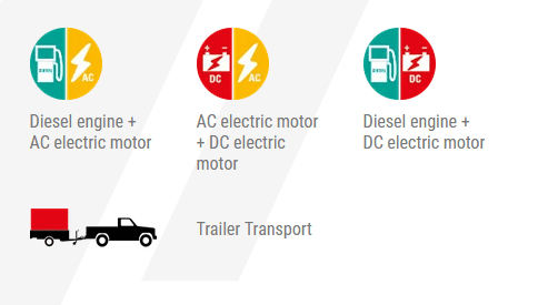 A bi-energy machine, it is available in the standard version, as a fully electric model, or as a hybrid version.