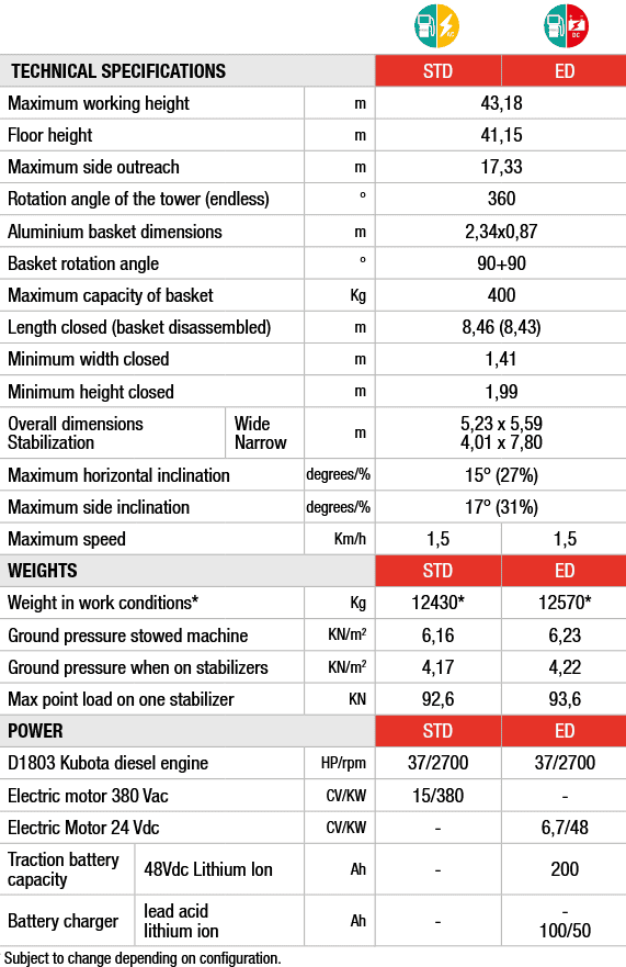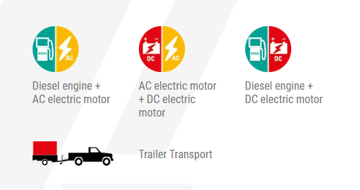 Hybrid version on request with Diesel engine and lithium-ion batteries