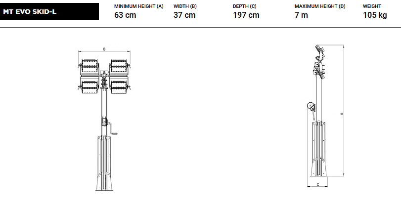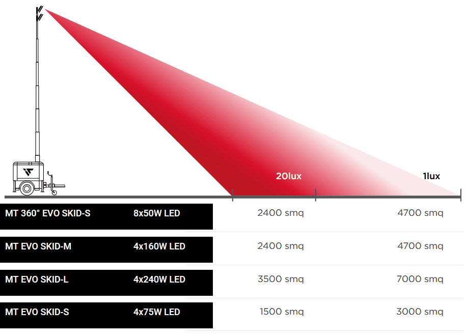 ITALTOWER MT EVO SKID - L | WITH MANUAL LIFTING SYSTEM KT UP TO 5.5/7M | ILLUMATED AREA UP TO 7000 SQM